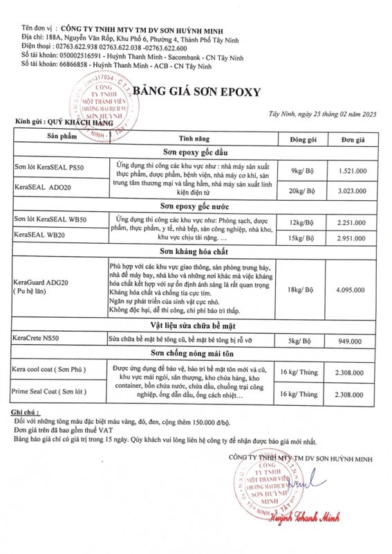 bảng giá Bảng giá sơn EPOXY Posted on 6 Tháng Mười Một, 202025 Tháng Hai, 2025 by citi 06 Th11 Ảnh: Bảng Màu sơn Epoxy APT citi Bảng giá sơn Falcon Bảng giá sơn Tison