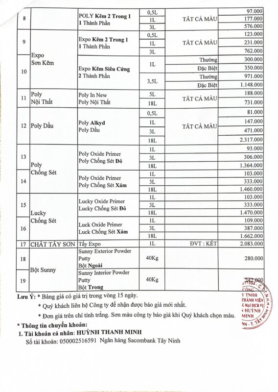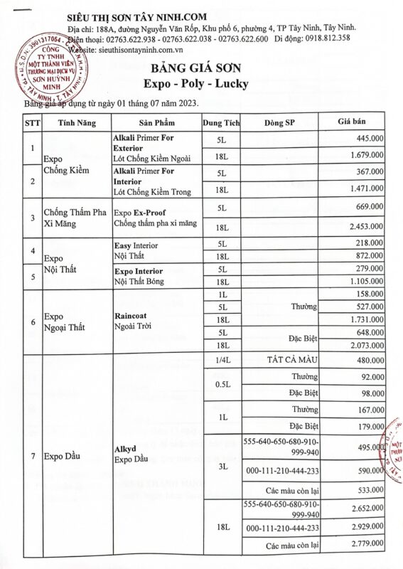 bảng giá Bảng giá sơn Expo Posted on 6 Tháng Mười Một, 20203 Tháng Bảy, 2023 by citi 06 Th11 citi Bảng giá sơn Dura Bảng giá sơn Skia