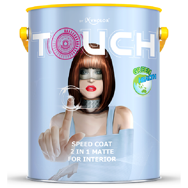 MYKOLOR TOUCH SPEED COAT 2 IN 1 MATTE FOR INTERIOR – SƠN NỘI THẤT CAO CẤP ĐA NĂNG 2 TRONG 1 là sản phẩm sơn cao cấp thi công nhanh không cần sơn lót với chất lượng tốt hơn những loại sơn thông thường về độ che phủ, độ bám dính, khả năng kháng kiềm và bền màu. Sản phẩm thích hợp dùng để trang trí các bề mặt tường nội thất, giúp tiết kiệm chi phí và thời gian thi công. Ngoài ra, sản phẩm còn có màu sắc đẹp cùng bộ sưu tập màu phong phú, màng sơn mờ cổ điển, góp phần làm đẹp cho ngôi nhà và công trình cao cấp.
