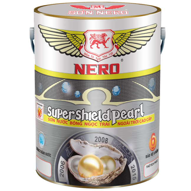 NERO SUPER SHIELD PEARL: Là sơn nước trang trí cao cấp ngoại thất 100% Arcylic gốc nước, chất lượng cao cấp, được thiết kế sản xuất phù hợp với khí hậu nhiệt đới, có màng sơn bóng ngọc trai lộng lẫy, độ che phủ cao, khả năng chống cac-bô-nít hóa, chống thấm, chống kiềm, chống rêu mốc, chống bám bụi xuất sắc; đặt biệt độ bền màu rất cao, là giải pháp hoàn hảo cho việc trang trí và bảo vệ các bề mặt tường ngoài trời
