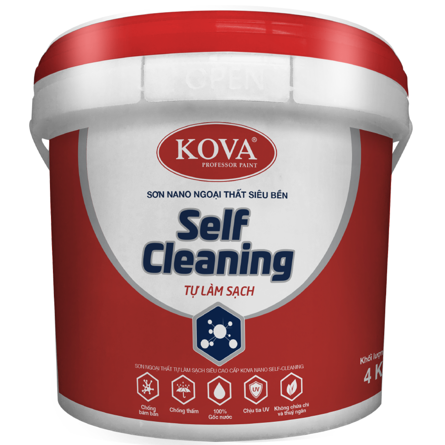 Sơn KOVA NANO Self- Cleaning Tự Làm Sạch với công nghệ NANO cho màng sơn có khả năng tực cách ly và đào thải bụi bẩn, giúp bề mặt sơn luôn sáng đẹp, bền màu.